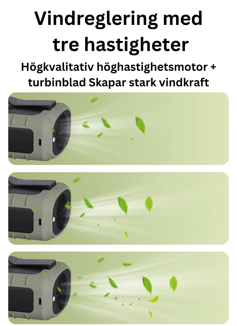 The adjustable fan speed allows you to tailor the airflow to your needs, whether you prefer a gentle breeze or stronger wind. The built-in battery extends the fan’s operation, and the USB charging function allows for convenient on-the-go charging.